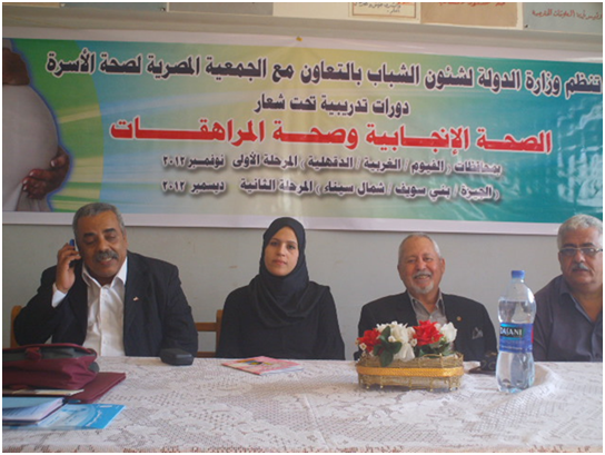 - تم التعاون مع جمعية الهلال الأحمر وكذلك جمعية القاهرة لتنظيم الأسرة فى تنفيذ عدة ورش عمل مدتها ثالث أيام للتوعية الإنجابية للفتيات المقبلات على الزواج فى الأحياء الشعبية بمدينة القاهرة الكبرى ولمدة خمس سنوات حضرها ما يزيد على 863 فتاة بالإضافة الى 72 شابا مقبلا على الزواج أيضا.
